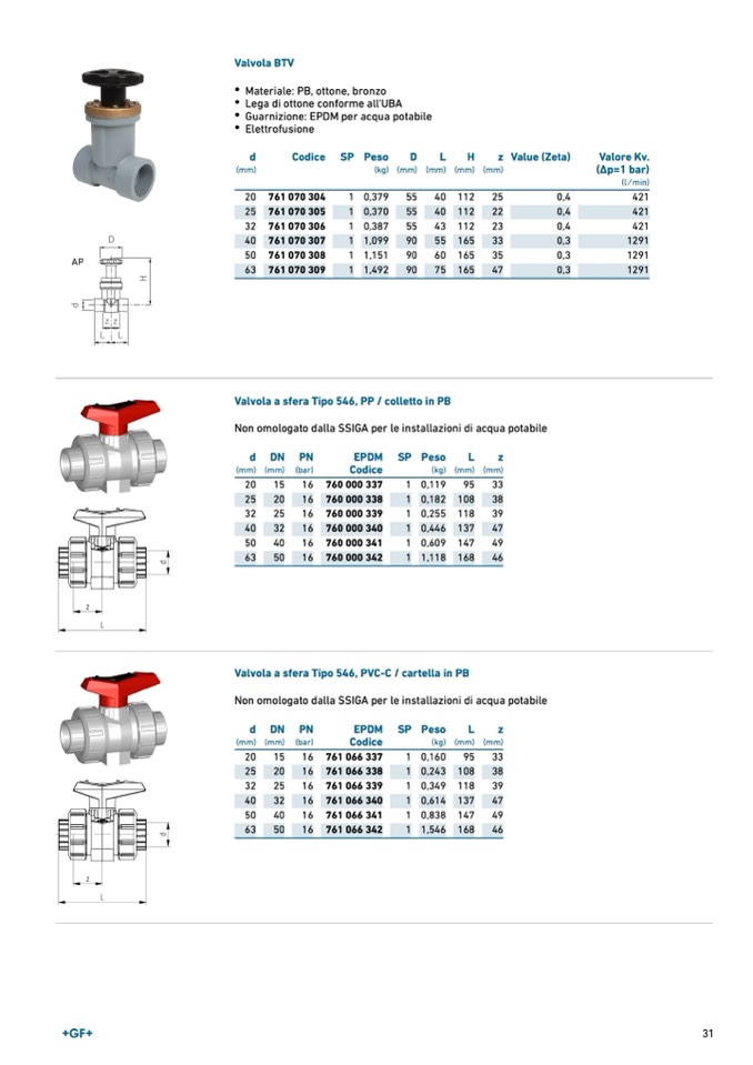 Valvola a sfera Tipo 546, PP / colletto in PB