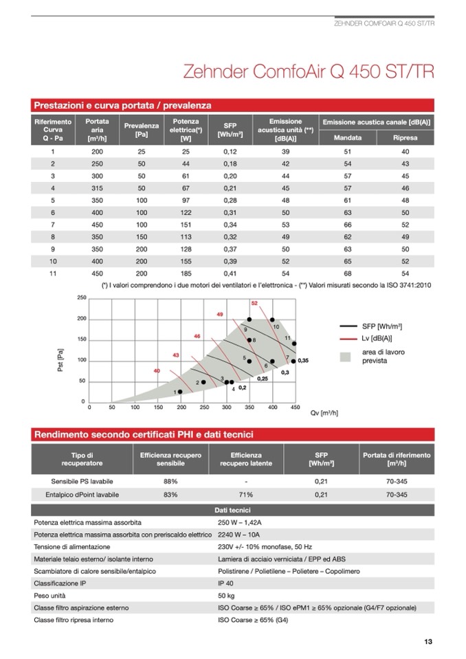 (*) I valori comprendono i due motori dei ventilatori e l’elettronica - (**) Valori misurati secondo la ISO 3741:2010