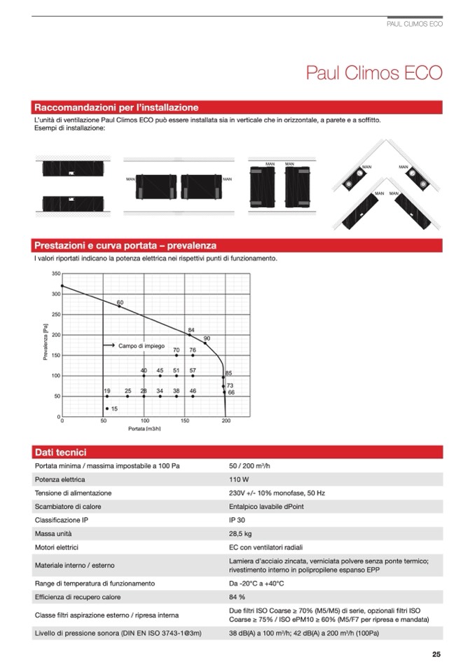 Due filtri ISO Coarse ≥ 70% (M5/M5) di serie, opzionali filtri ISO