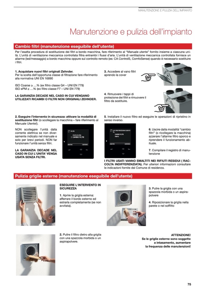 1. Acquistare nuovi filtri originali Zehnder.