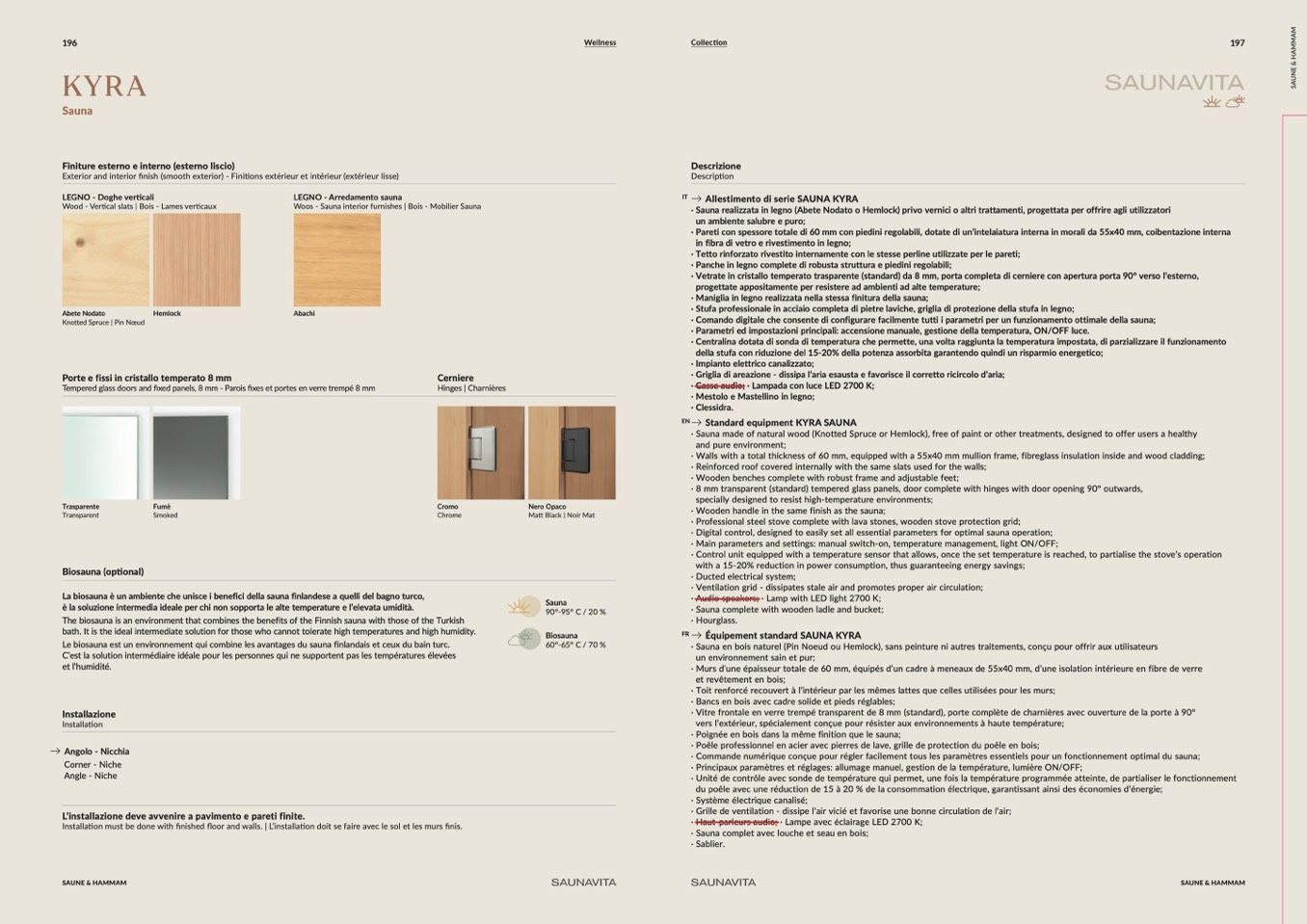 Équipement standard SAUNA KYRA