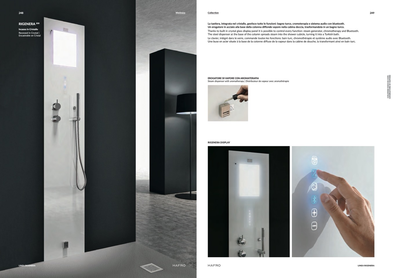 tiera, integrata nel cristallo, gestisce tutte le funzioni: bagno turco, cromoterapia e sistema audio con bluetooth.