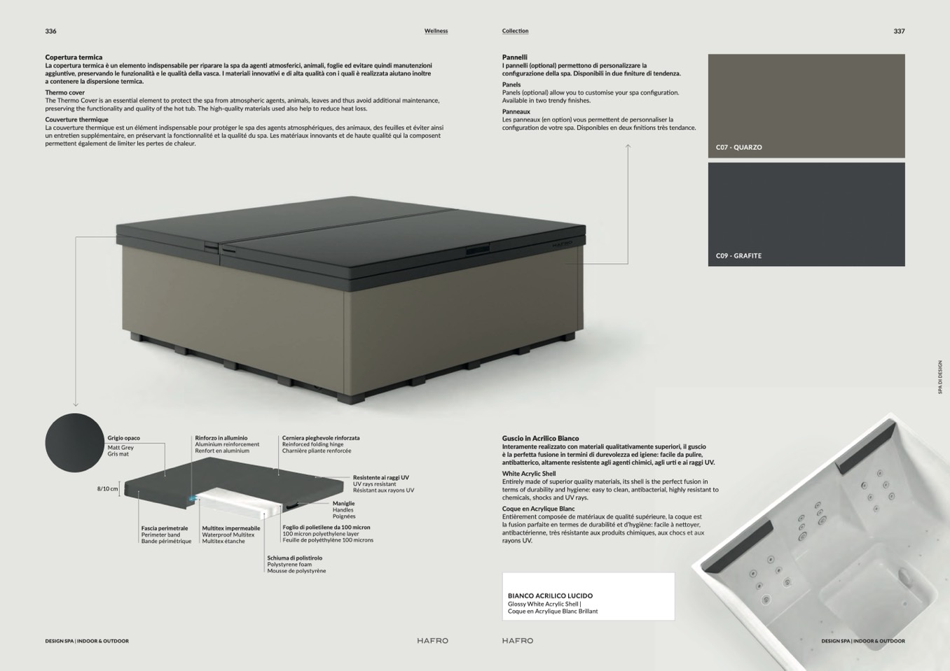 configurazione della spa. Disponibili in due finiture di tendenza.