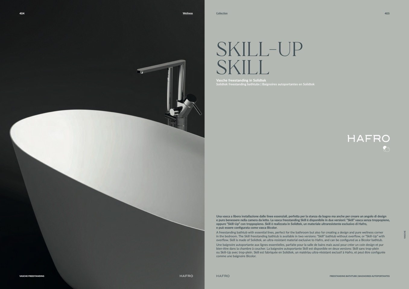 flow. Skill is made of Solidtek, an ultra-resistant material exclusive to Hafro, and can be configured as a Bicolor bathtub.