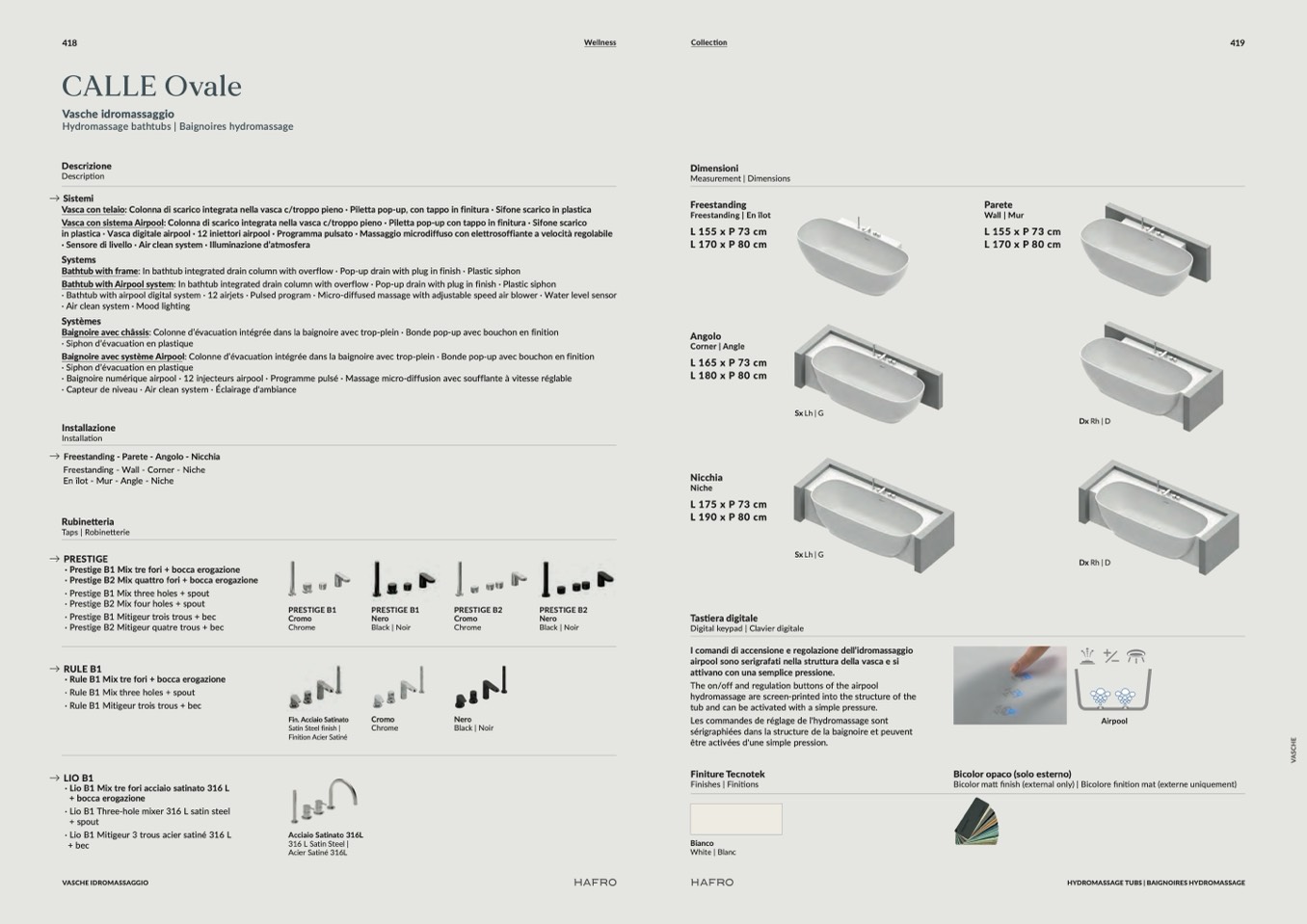 in plastica ∙ Vasca digitale airpool ∙ 12 iniettori airpool ∙ Programma pulsato ∙ Massaggio microdiffuso con elettrosoffiante a velocit