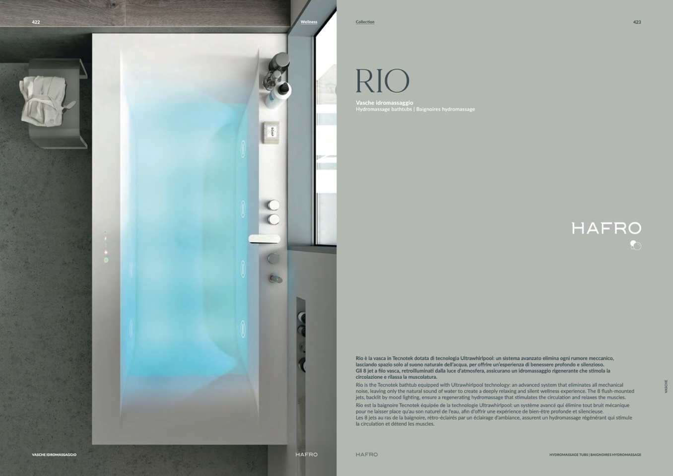 Rio is the Tecnotek bathtub equipped with Ultrawhirlpool technology: an advanced system that eliminates all mechanical