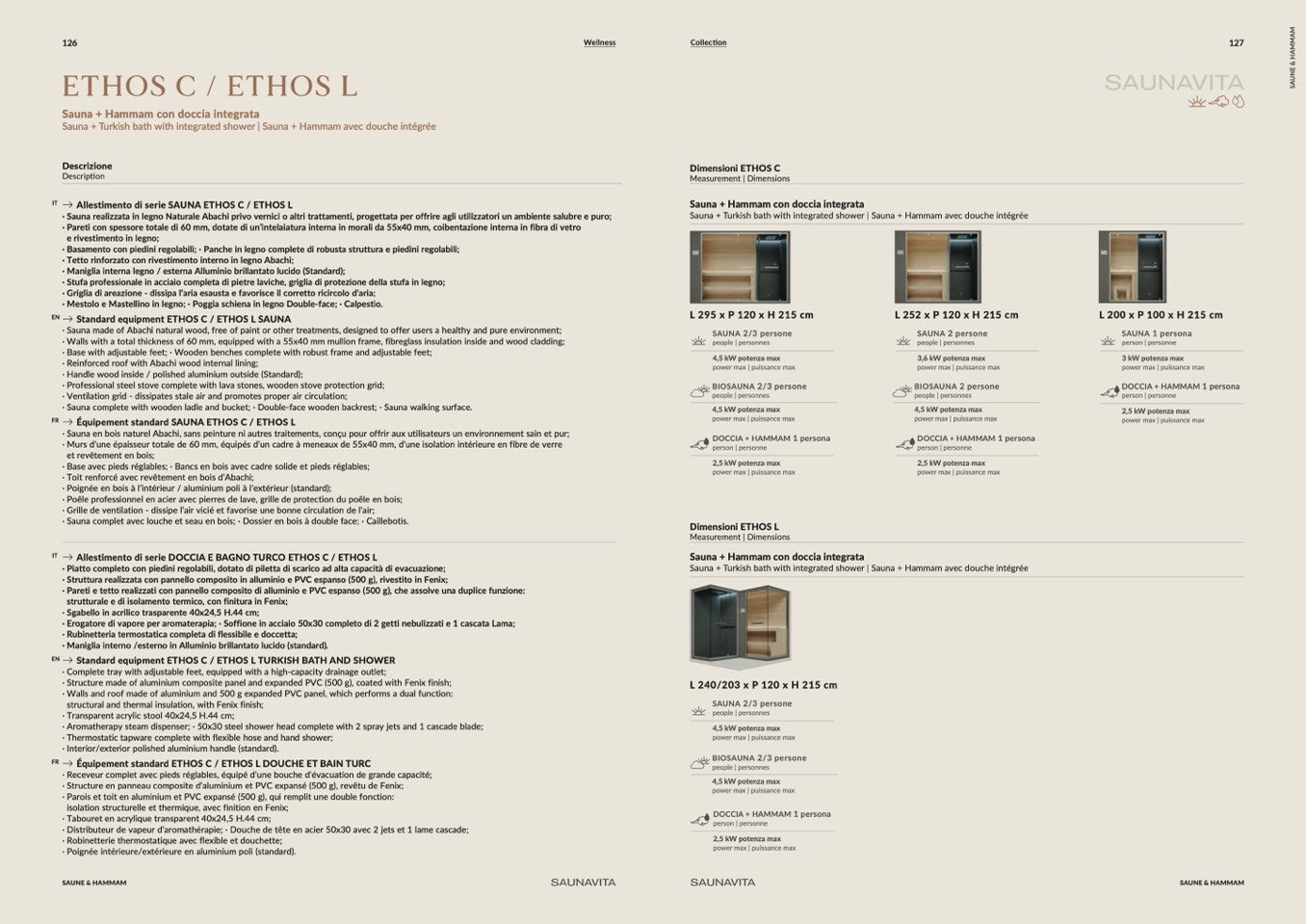 Équipement standard SAUNA ETHOS C / ETHOS L
