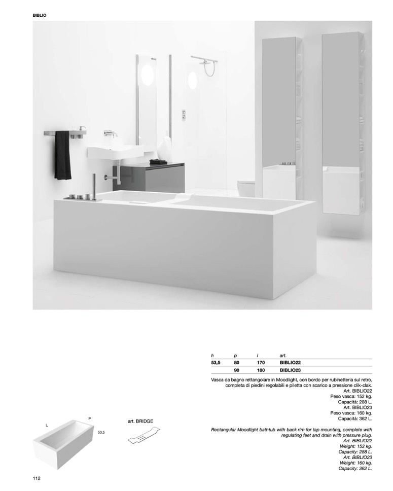 Vasca da bagno rettangolare in Moodlight, con bordo per rubinetteria sul retro,