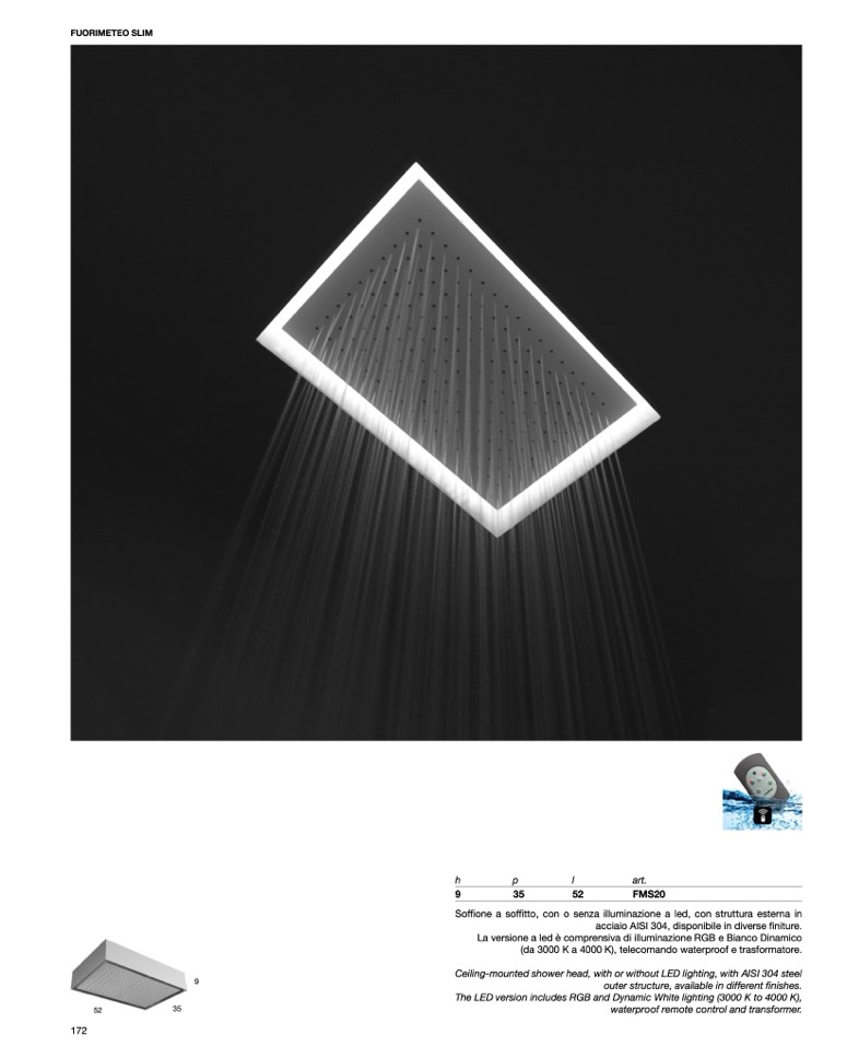 Ceiling-mounted shower head, with or without LED lighting, with AISI 304 steel