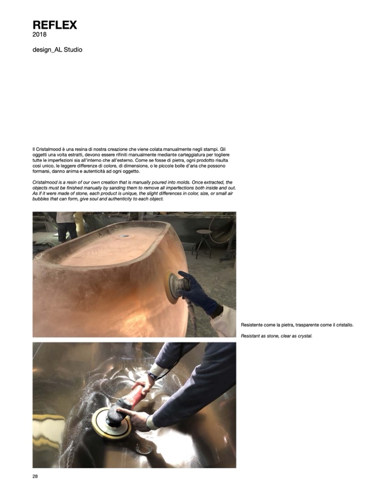 Cristalmood is a resin of our own creation that is manually poured into molds. Once extracted, the