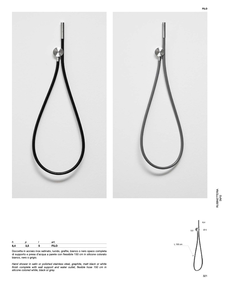 Hand shower in satin or polished stainless steel, graphite, matt black or white