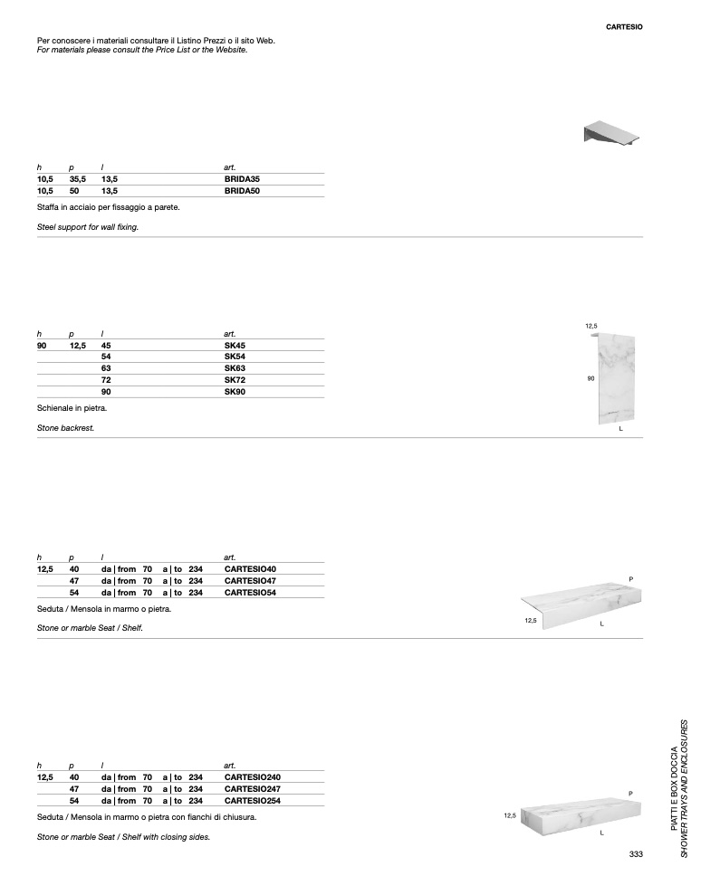 For materials please consult the Price List or the Website.