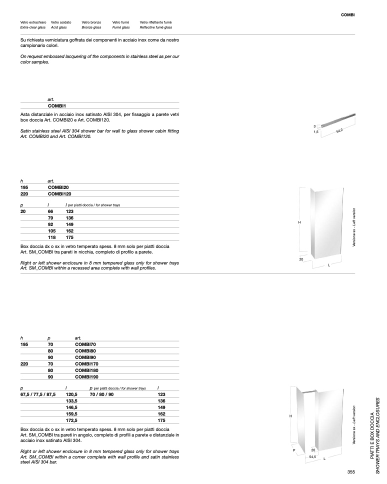Art. SM_COMBI tra pareti in angolo, completo di profili a parete e distanziale in