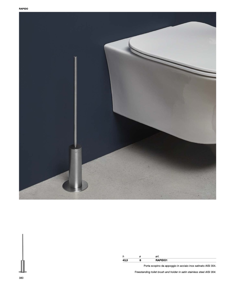 Freestanding toilet brush and holder in satin stainless steel AISI 304.