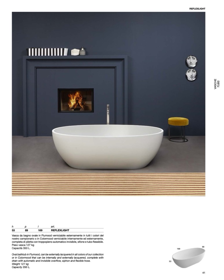 Oval bathtub in Flumood, can be externally lacquered in all colors of our collection
