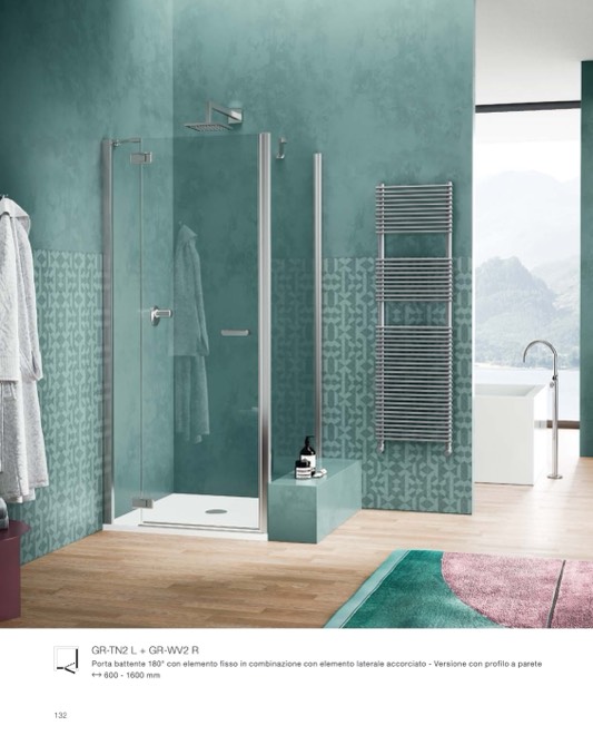 Porta battente 180° con elemento fisso in combinazione con elemento laterale accorciato - Versione con profilo a parete