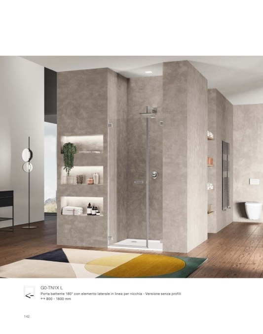 Porta battente 180° con elemento laterale in linea per nicchia - Versione senza profili