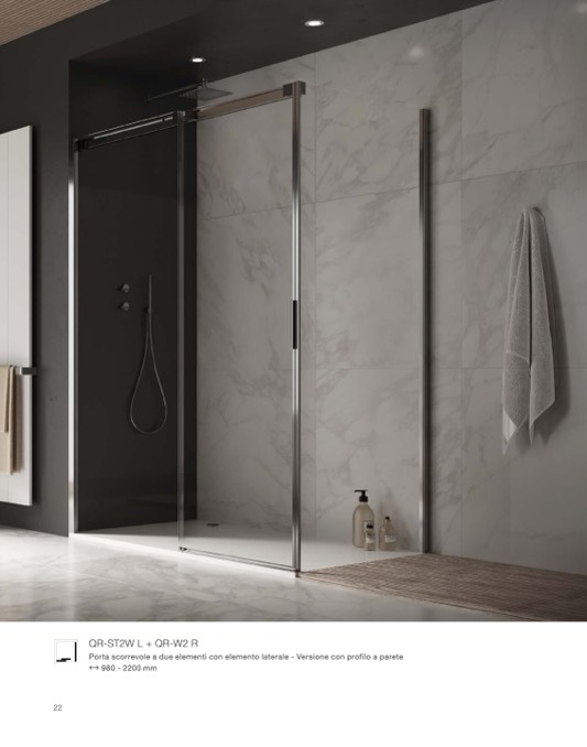 Porta scorrevole a due elementi con elemento laterale - Versione con profilo a parete