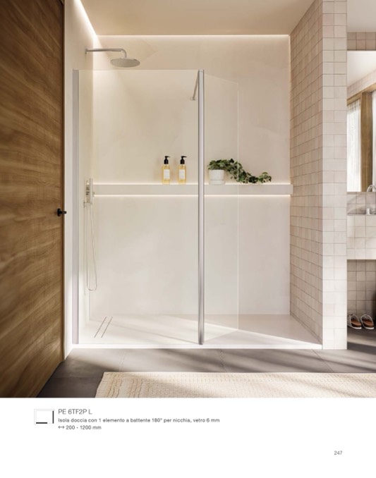 Isola doccia con 1 elemento a battente 180° per nicchia, vetro 6 mm