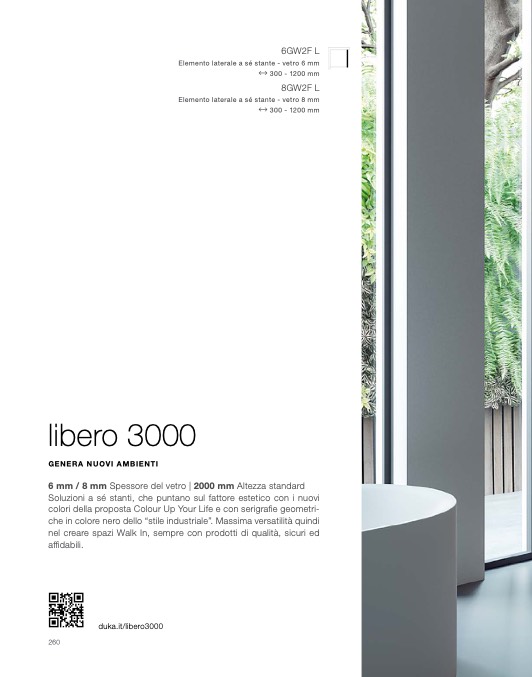 6 mm / 8 mm Spessore del vetro | 2000 mm Altezza standard