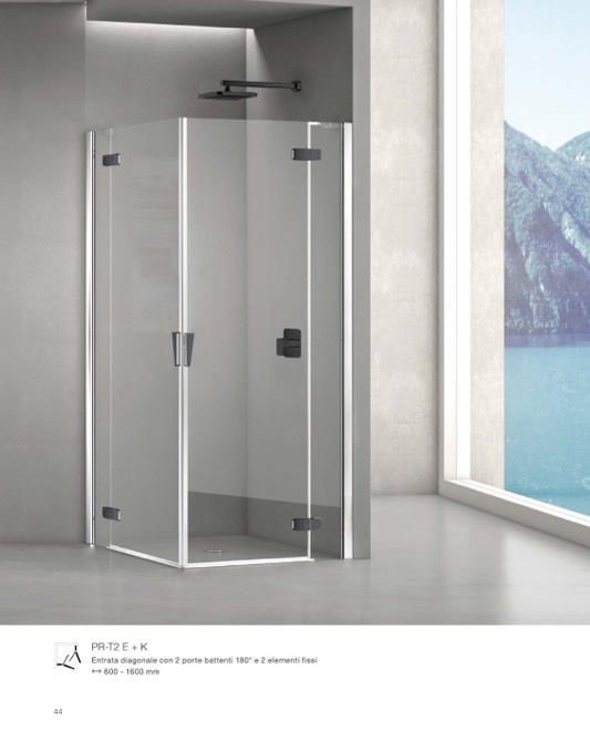 Entrata diagonale con 2 porte battenti 180° e 2 elementi fissi