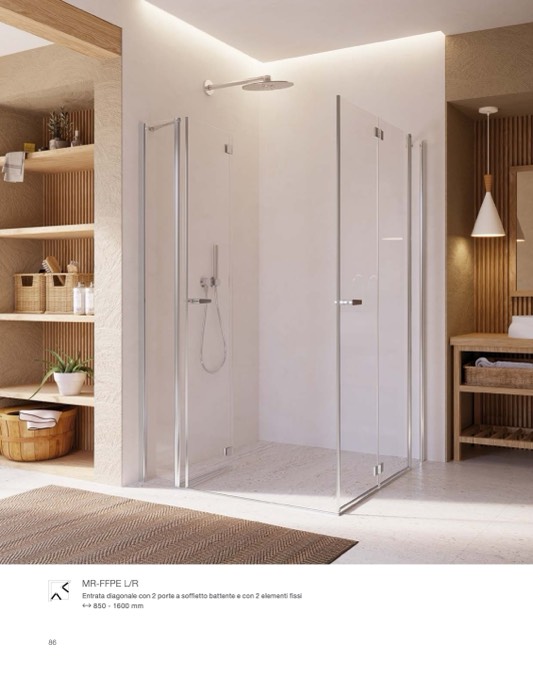 Entrata diagonale con 2 porte a soffietto battente e con 2 elementi fissi