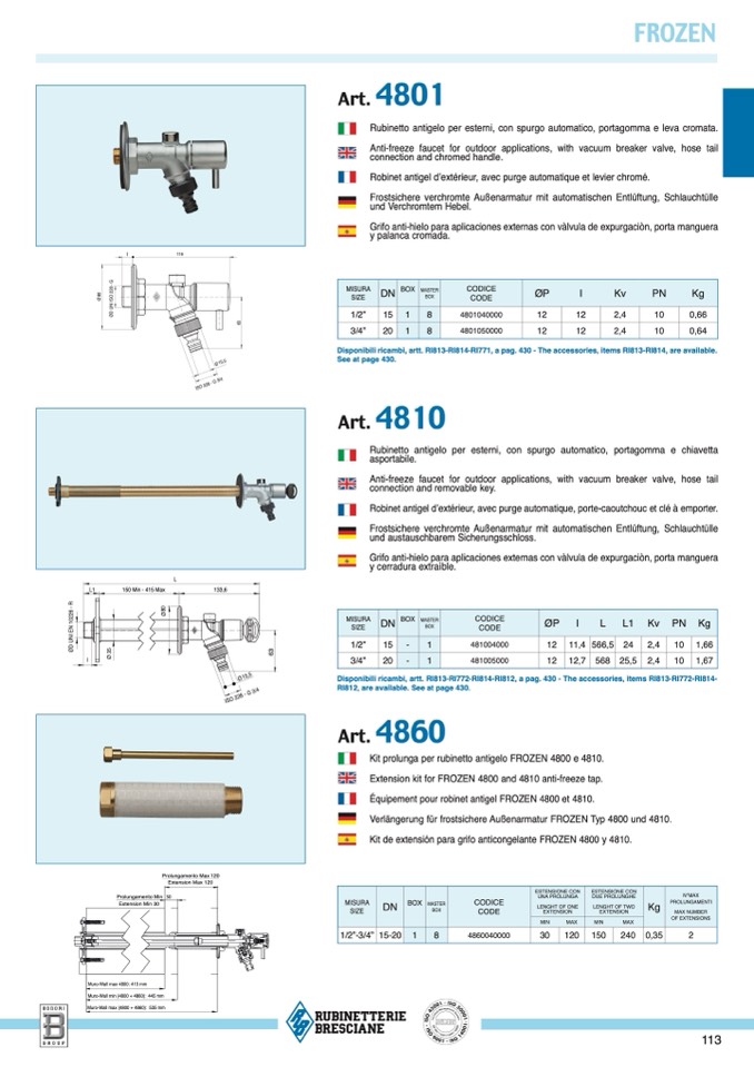 Disponibili ricambi, artt. RI813-RI814-RI771, a pag. 430 - The accessories, items RI813-RI814, are available.