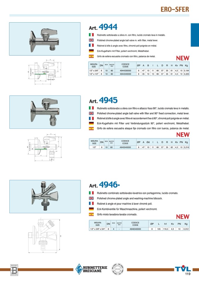 Eck-Kombiventile für Waschmaschine, poliert verchromt.