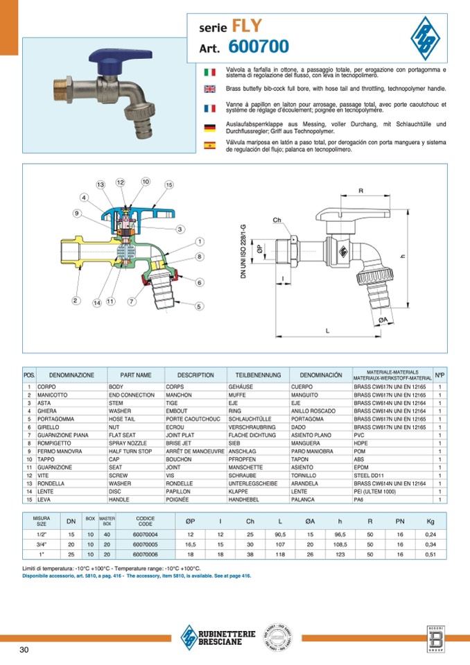 Limiti di temperatura: -10°C +100°C - Temperature range: -10°C +100°C