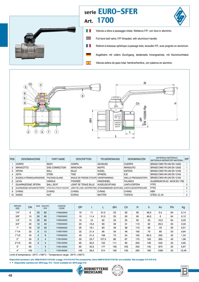 Limiti di temperatura: -20°C +160°C - Temperature range: -20°C +160°C