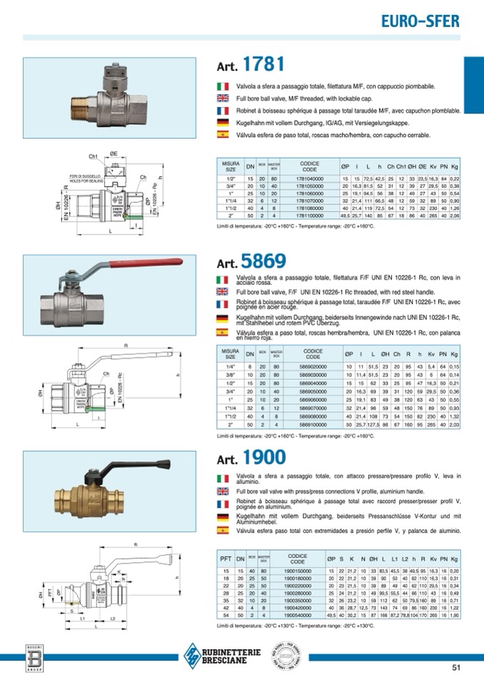 Limiti di temperatura: -20°C +130°C - Temperature range: -20°C +130°C