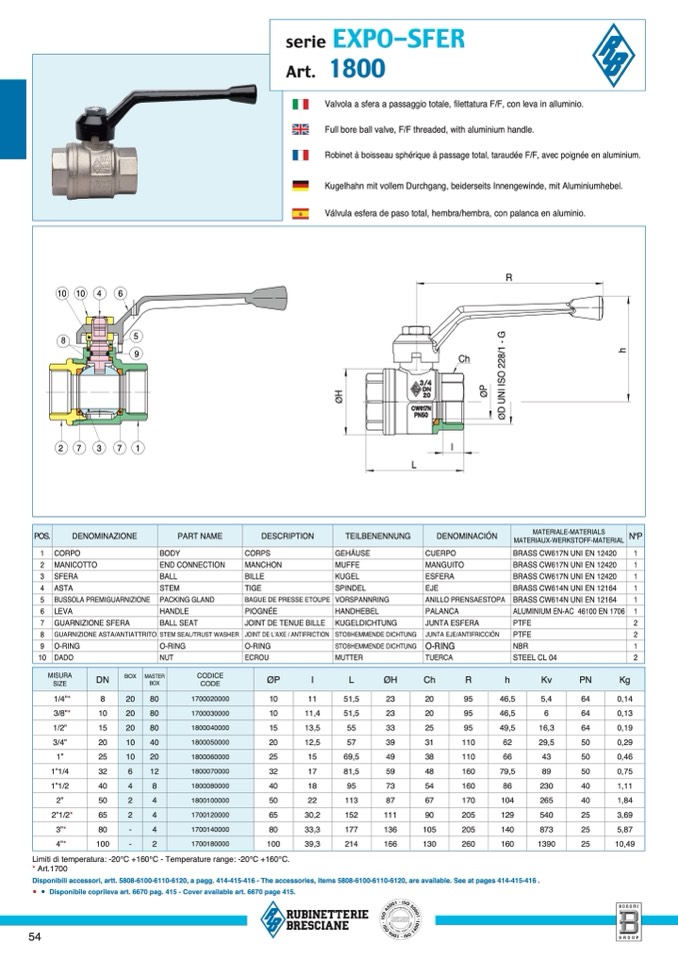 Limiti di temperatura: -20°C +160°C - Temperature range: -20°C +160°C