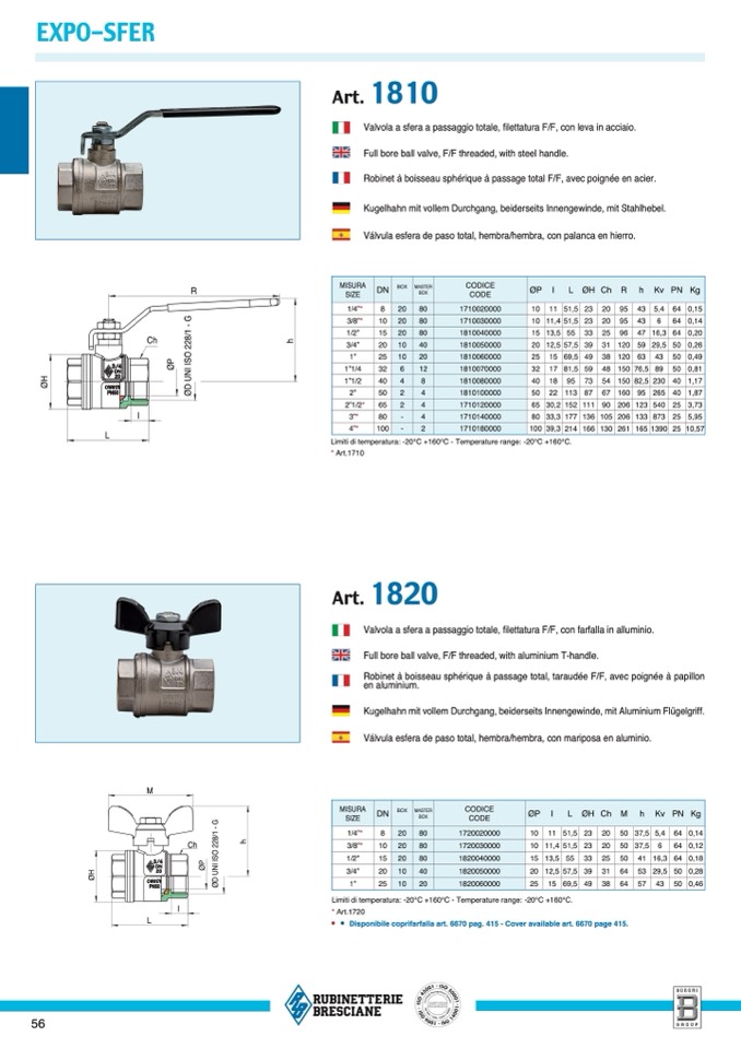Limiti di temperatura: -20°C +160°C - Temperature range: -20°C +160°C