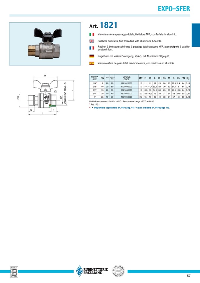Limiti di temperatura: -20°C +160°C - Temperature range: -20°C +160°C.