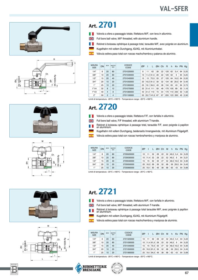Limiti di temperatura: -20°C +160°C - Temperature range: -20°C +160°C