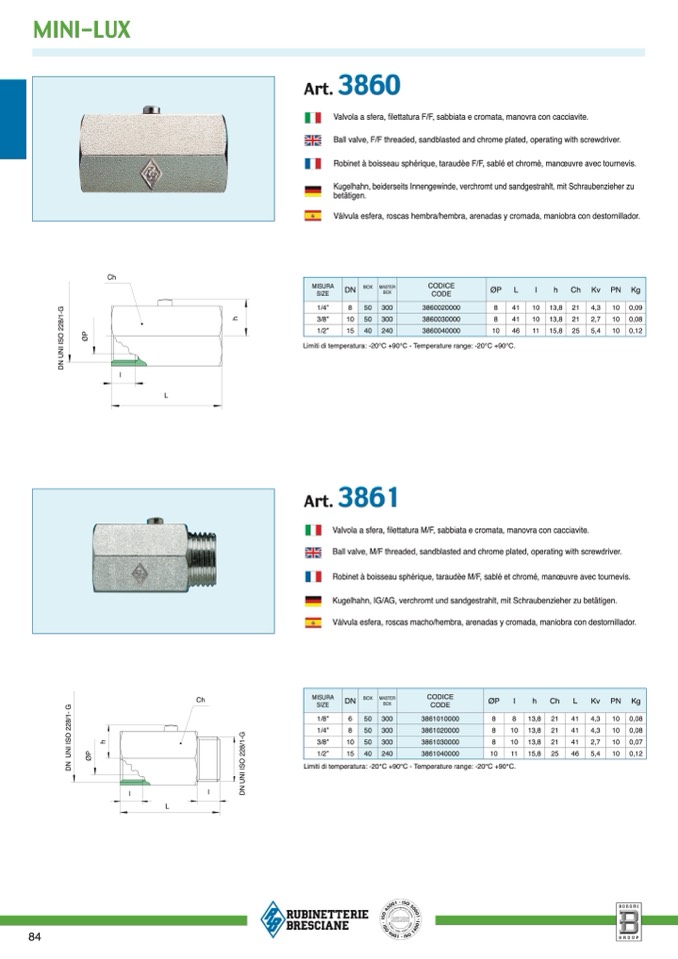 Limiti di temperatura: -20°C +90°C - Temperature range: -20°C +90°C.