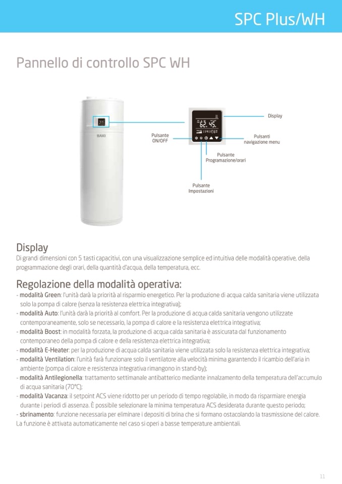 - modalità Antilegionella: trattamento settimanale antibatterico mediante innalzamento della temperatura dell’accumulo