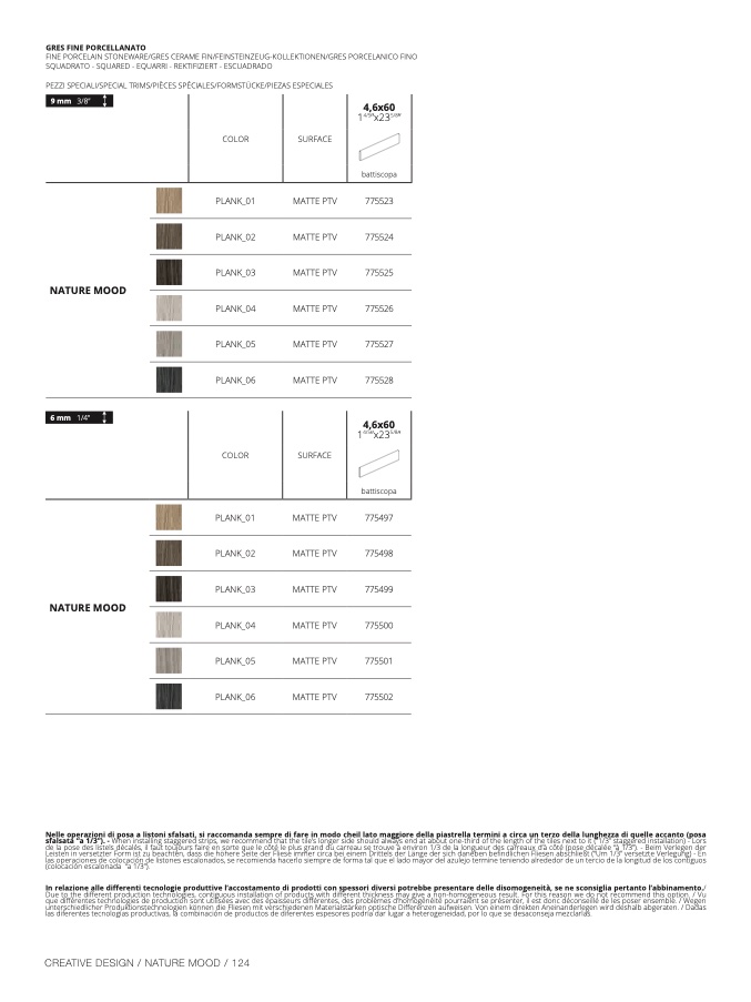 In relazione alle differenti tecnologie produttive l’accostamento di prodotti con spessori diversi potrebbe presentare delle disomogeneità, se ne sconsiglia pertanto l’abbinamento.