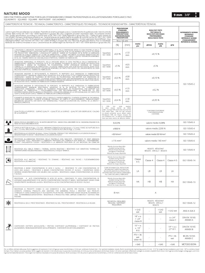 Appendice G groupe BIa UGL/ Nicht glasierte und vollständig gesinterte Feinsteinzeugplatten. Trocken gepresste Keramik