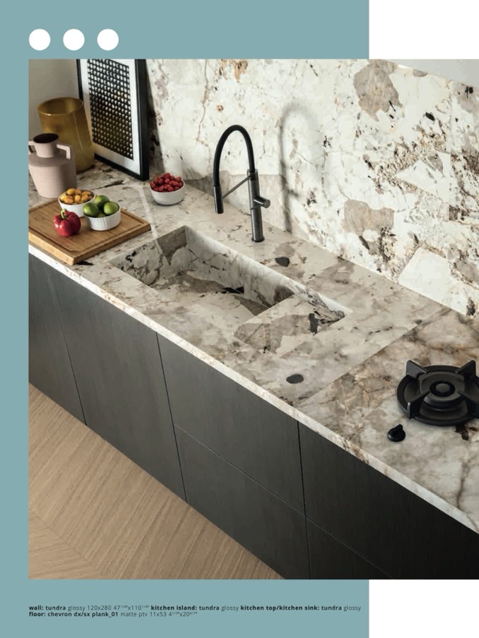 wall: tundra glossy 120x280 471/4”x1101/4” kitchen island: tundra glossy kitchen top/kitchen sink: tundra glossy