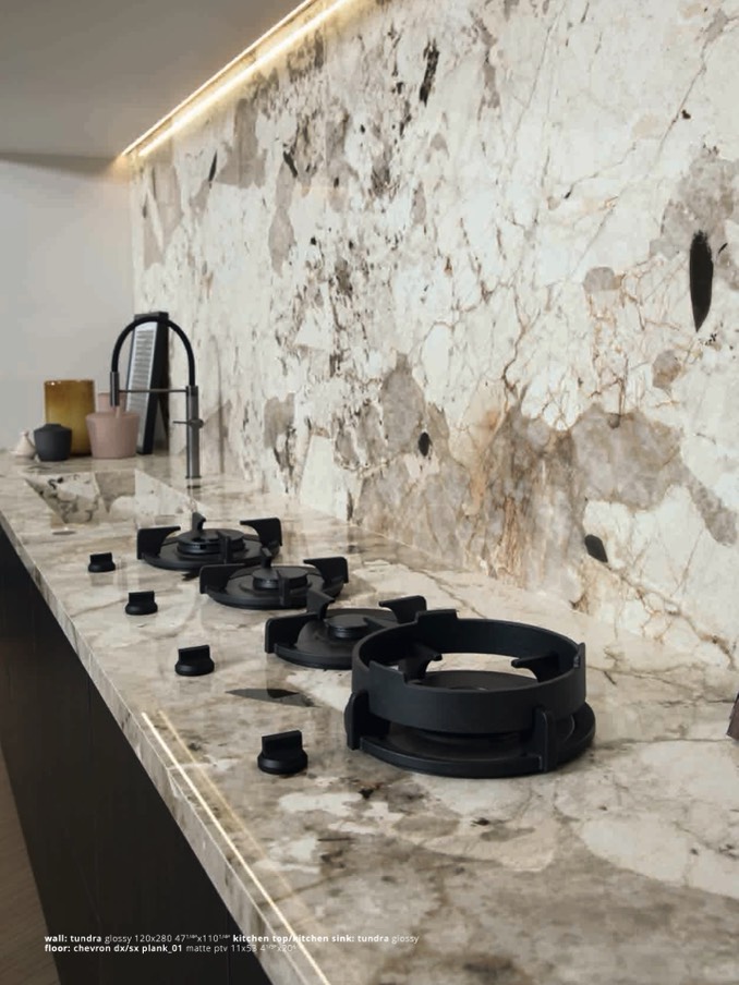 wall: tundra glossy 120x280 471/4”x1101/4” kitchen top/kitchen sink: tundra gloss