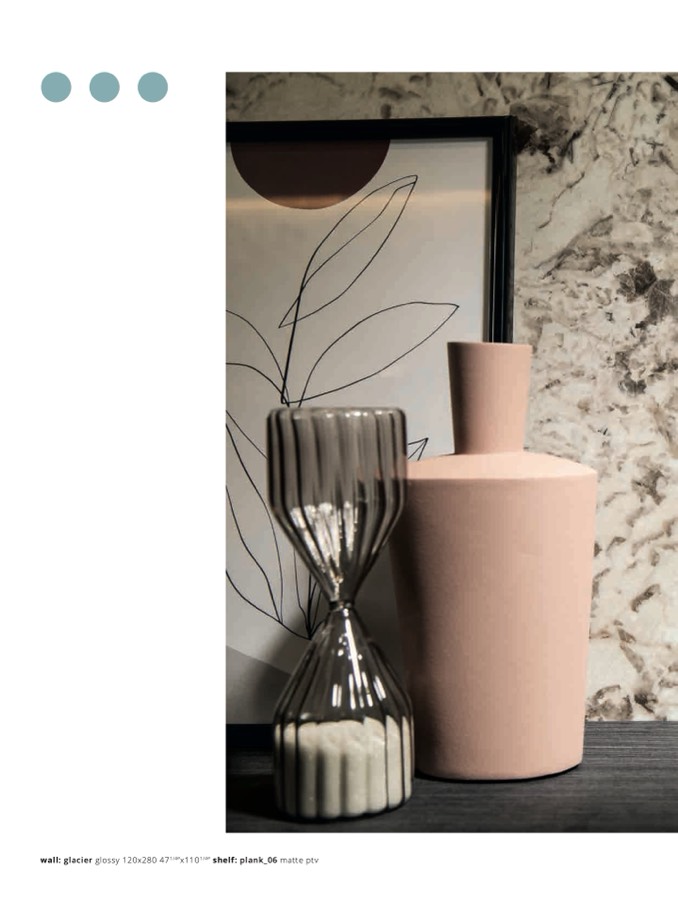 wall: glacier glossy 120x280 471/4”x1101/4” shelf: plank_06 matte ptv