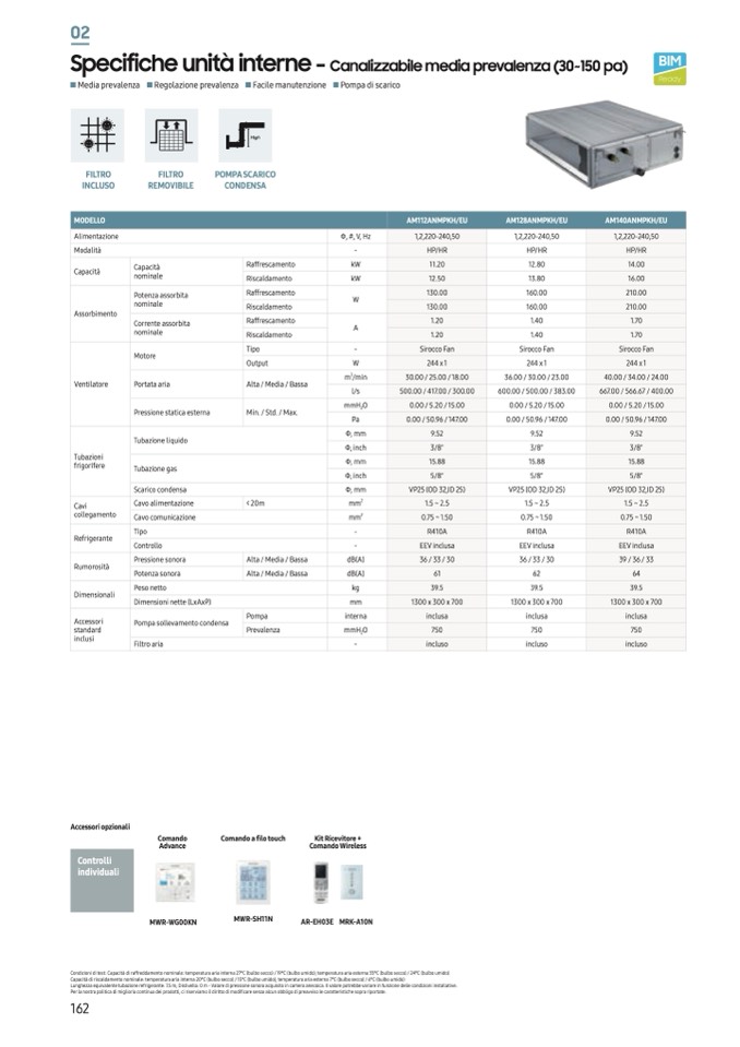 Lunghezza equivalente tubazione refrigerante: 7.5 m; Dislivello: 0 m - Valore di pressione sonora acquisito in camera anecoica. Il valore potrebbe variare in funzione delle condizioni installative.