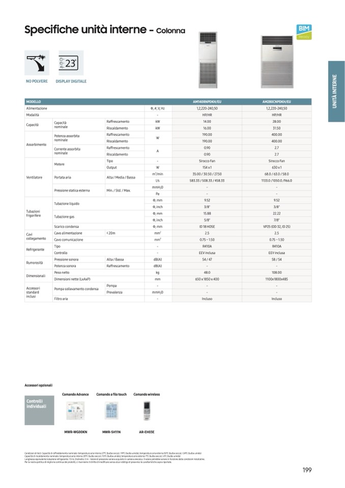 Lunghezza equivalente tubazione refrigerante: 7.5 m; Dislivello: 0 m - Valore di pressione sonora acquisito in camera anecoica. Il valore potrebbe variare in funzione delle condizioni installative.