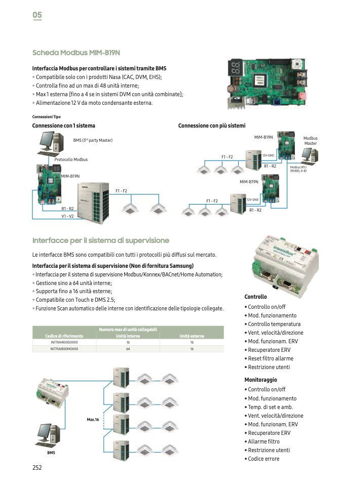 • Interfaccia per il sistema di supervisione Modbus/Konnex/BACnet/Home Automation;