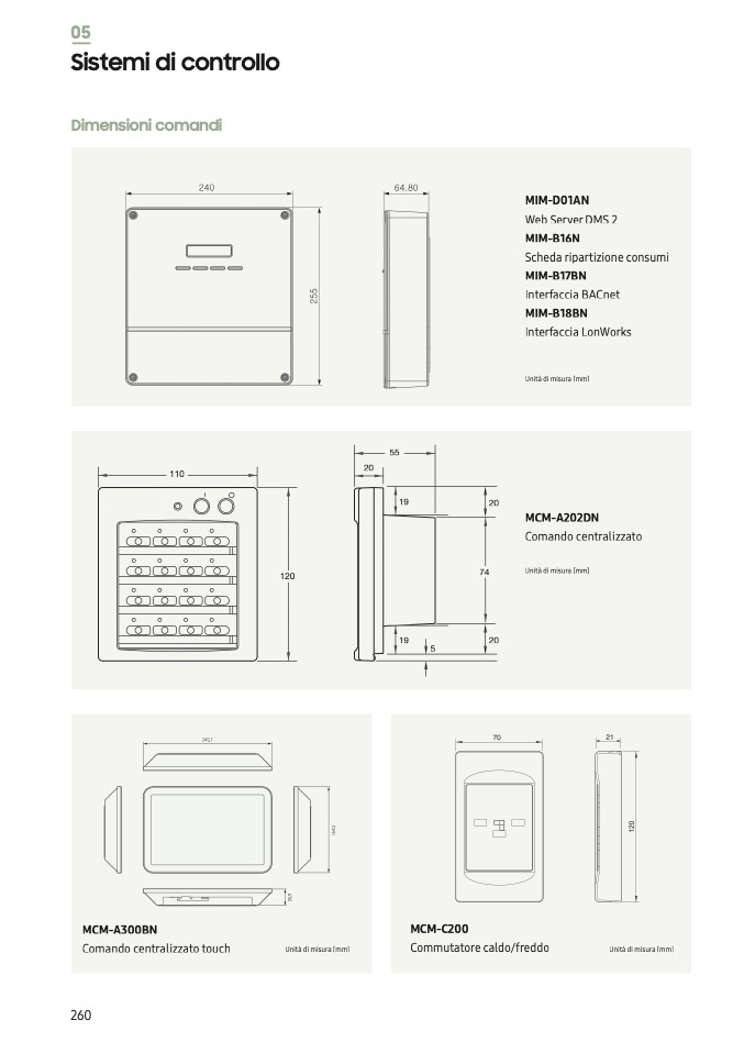 Dimensioni comandi