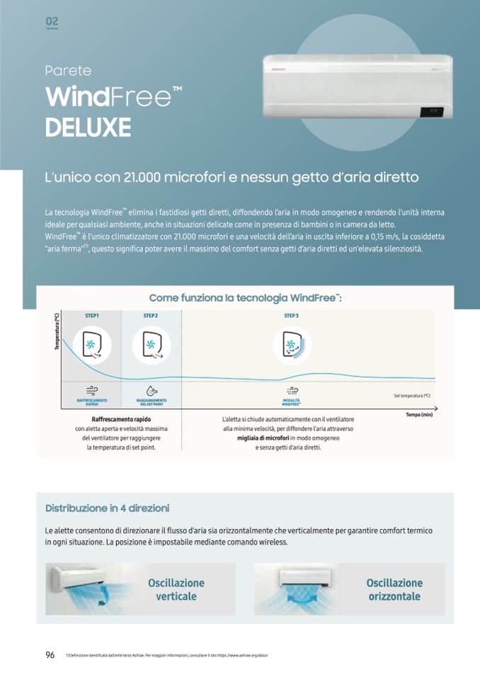 è l’unico climatizzatore con 21.000 microfori e una velocità dell’aria in uscita inferiore a 0,15 m/s, la cosiddetta