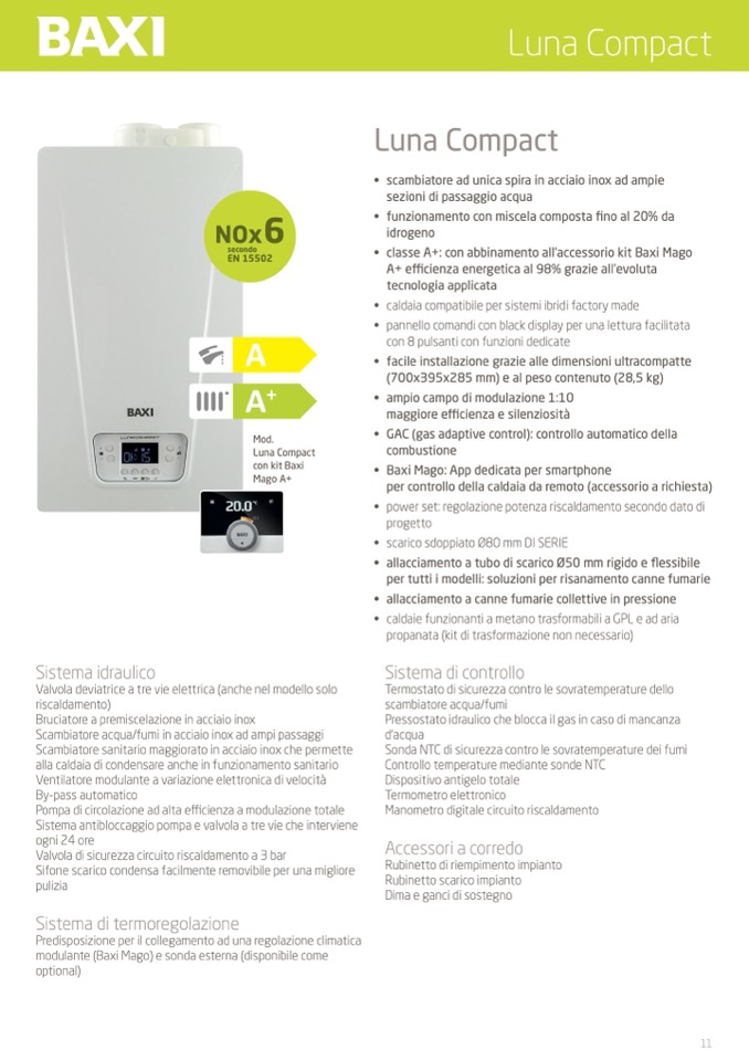 • classe A+: con abbinamento all’accessorio kit Baxi Mago