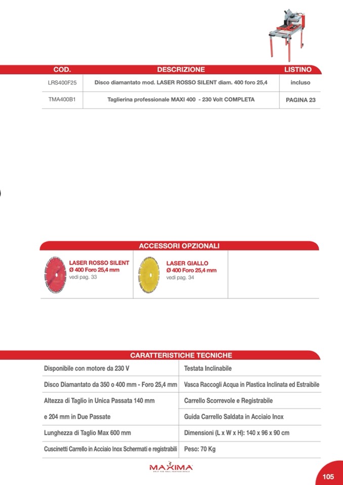 Taglierina professionale MAXI 400 - 230 Volt COMPLETA
