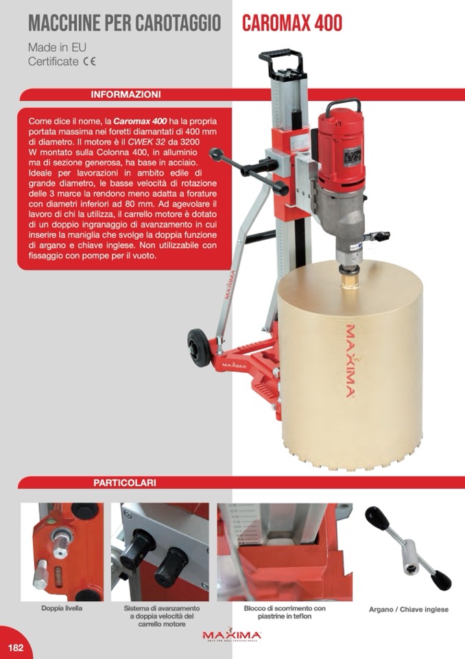 portata massima nei foretti diamantati di 400 mm